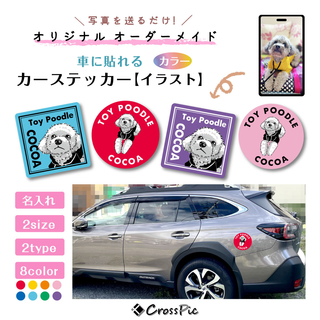 カーステッカー イラスト ++ペットの写真をイラスト化++車に貼れる名入れステッカー