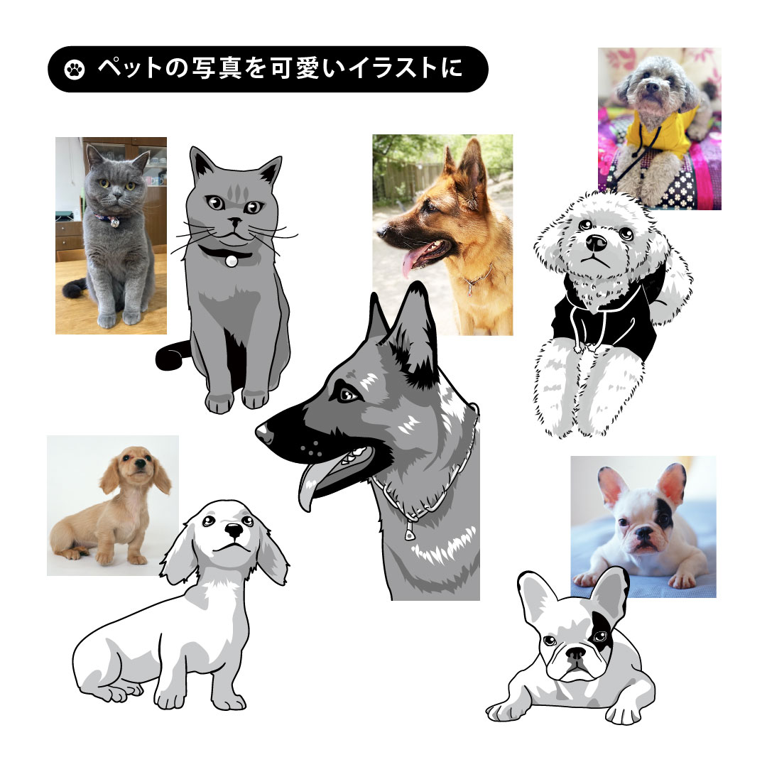 ※送っていただいた写真からイラストを作成し、各商品に同じイラストを使用します。