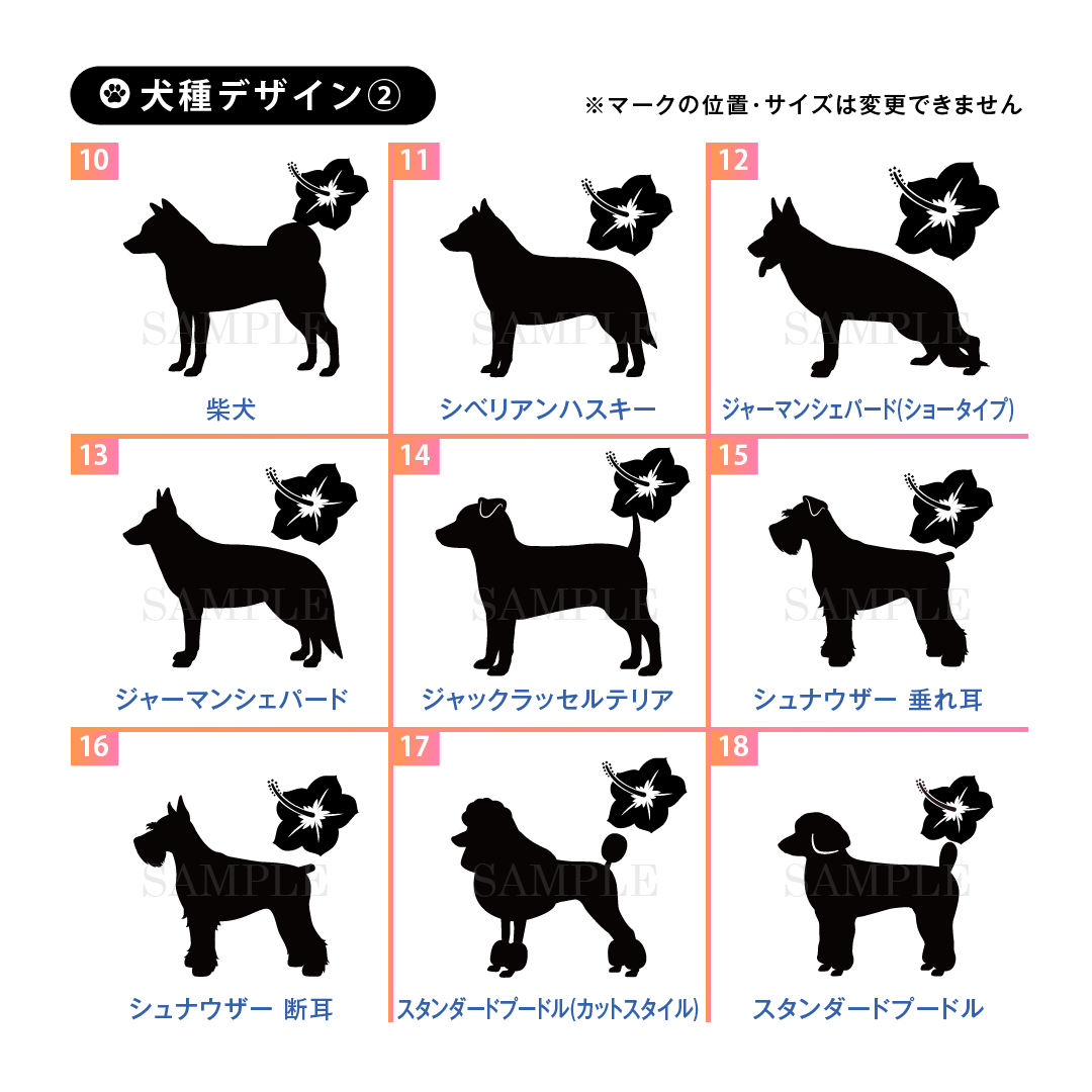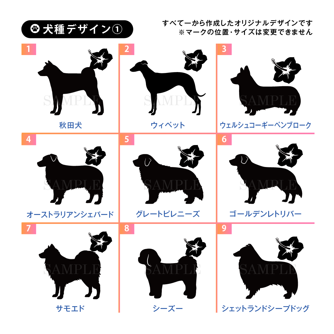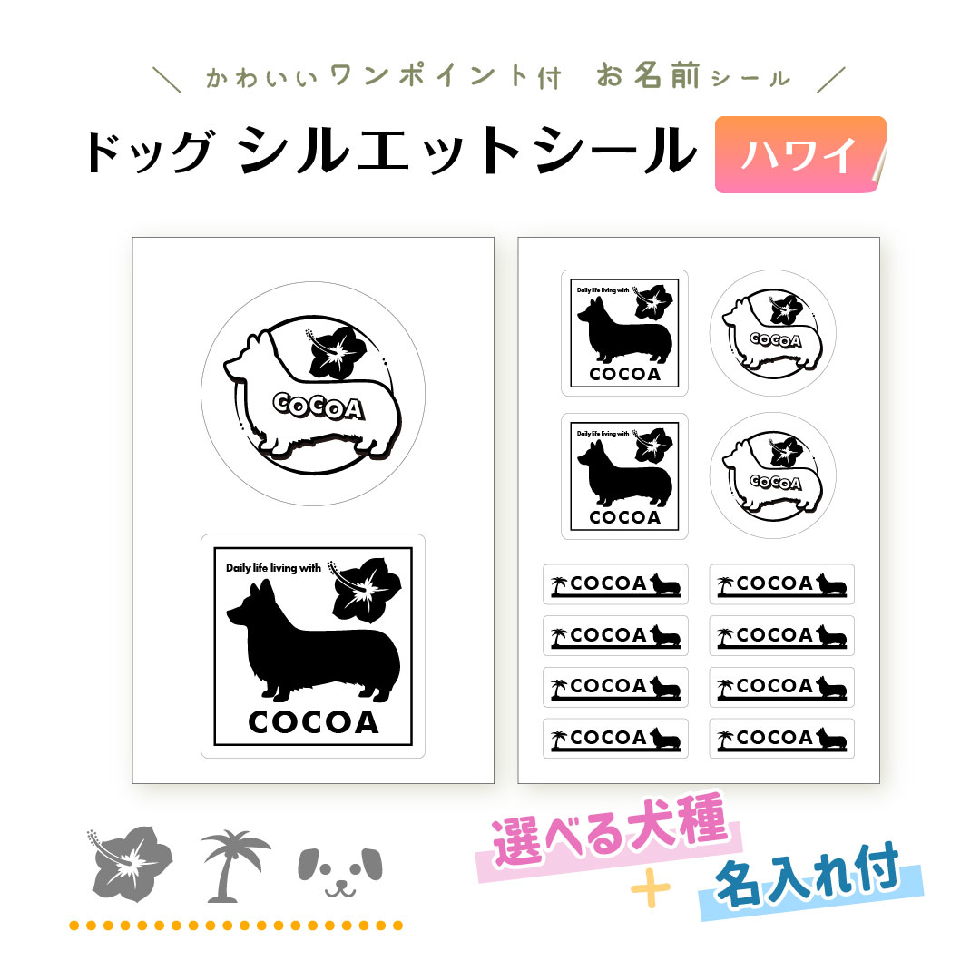 ドッグ シルエット シール (ハワイ)++犬種を選んでつくる名入れ防水シール