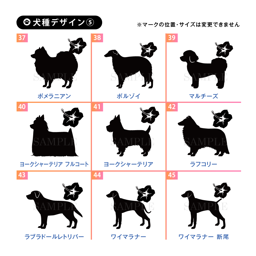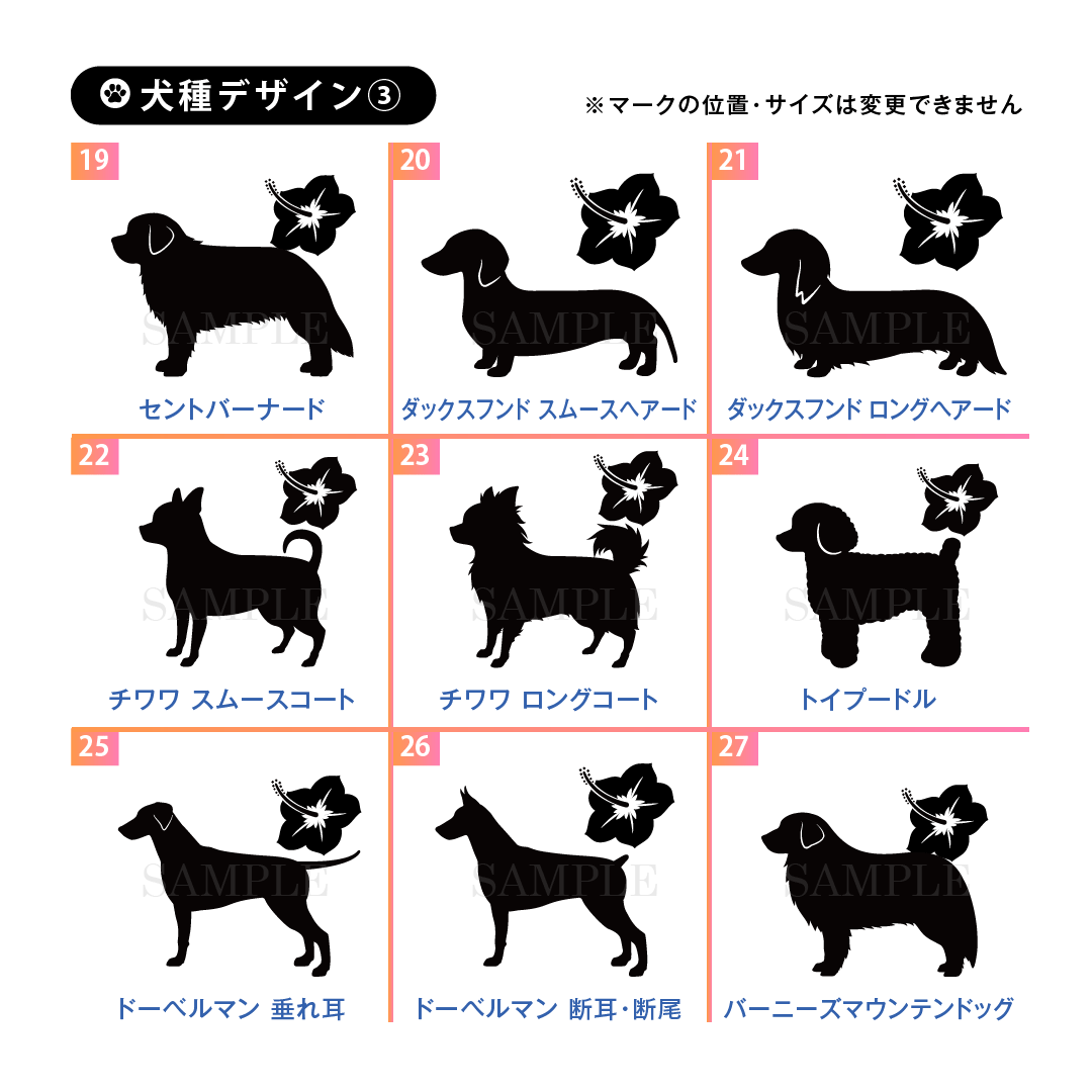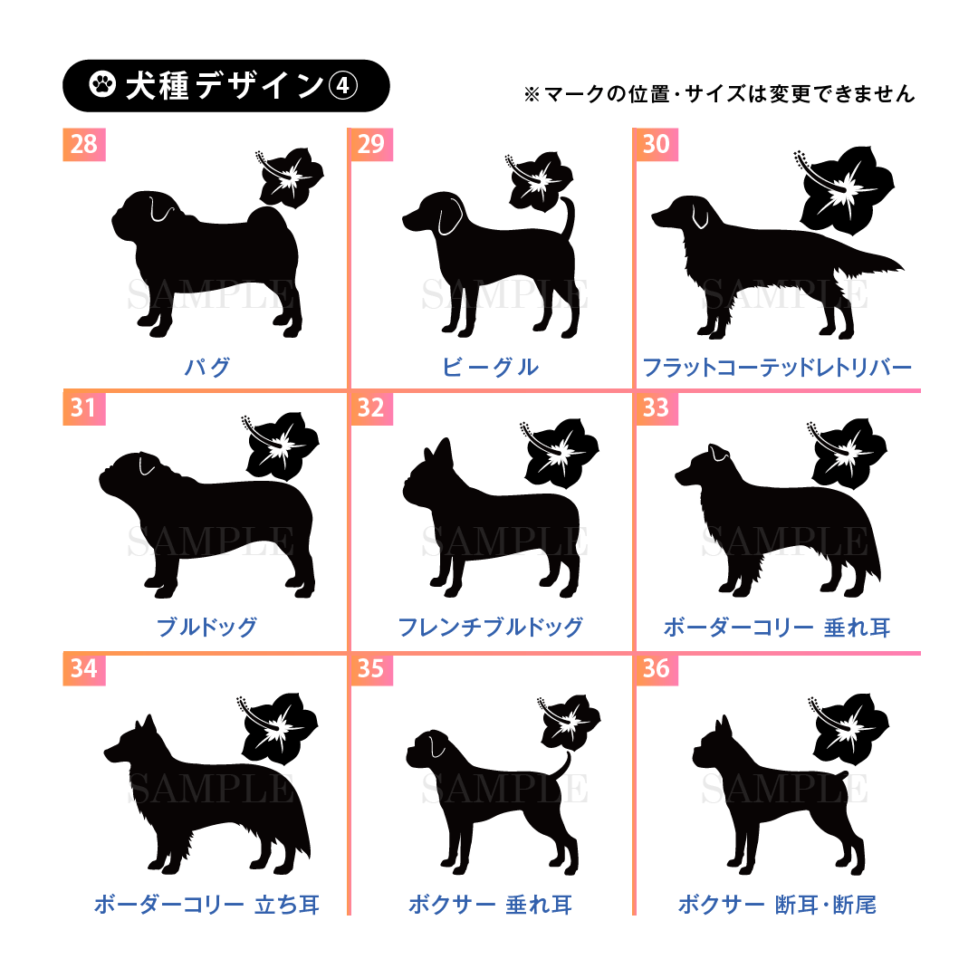ドッグ シルエット シール (ハワイ)++犬種を選んでつくる名入れ防水シール