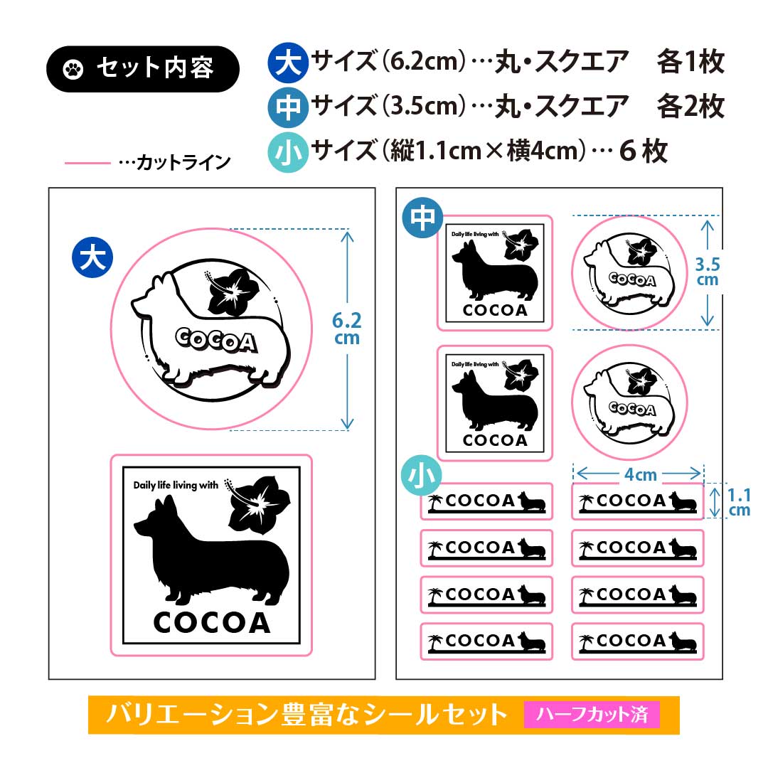 シールサイズ:大 6.2×6.2cm/中 3.5×3.5cm/小 4×1.1cm